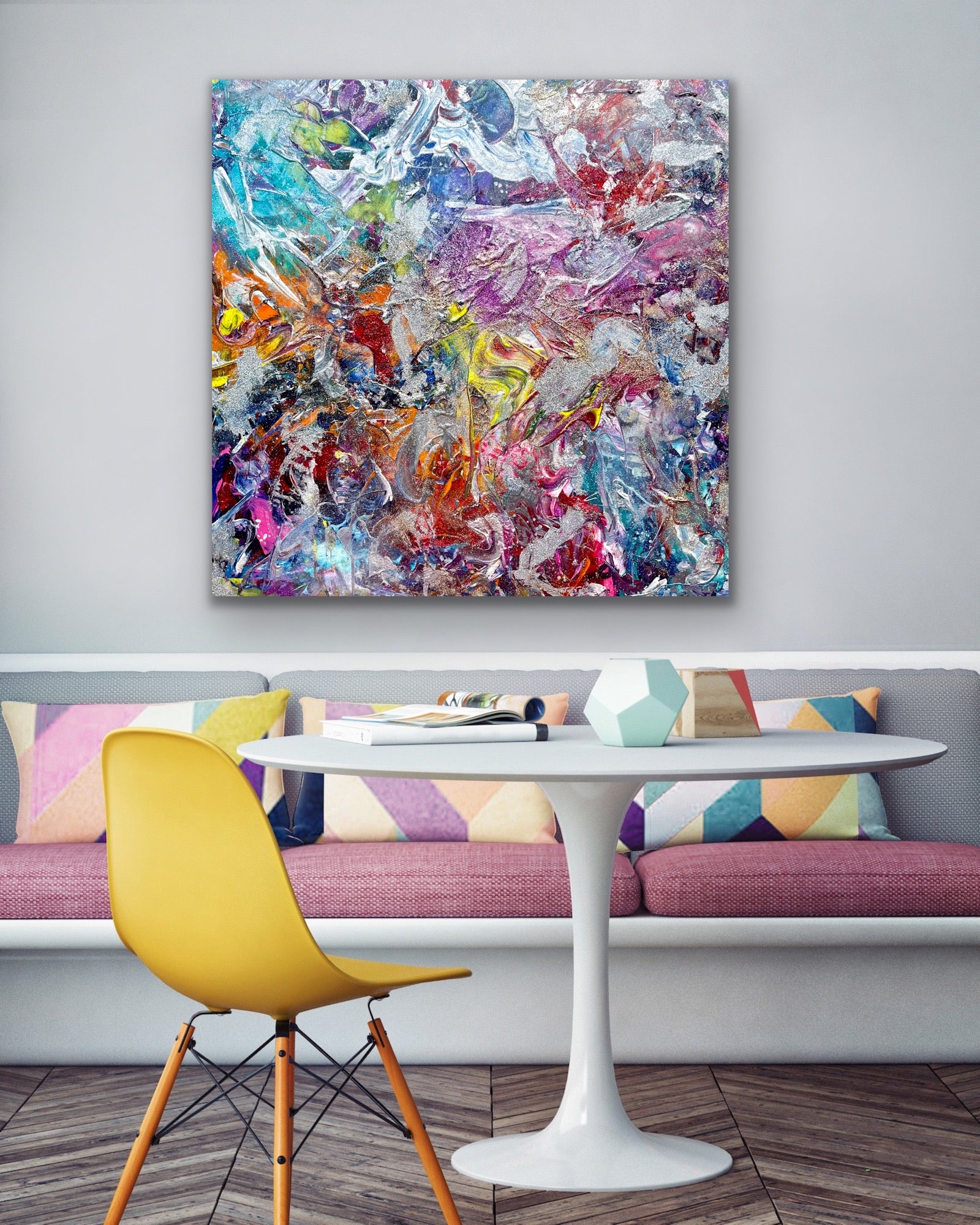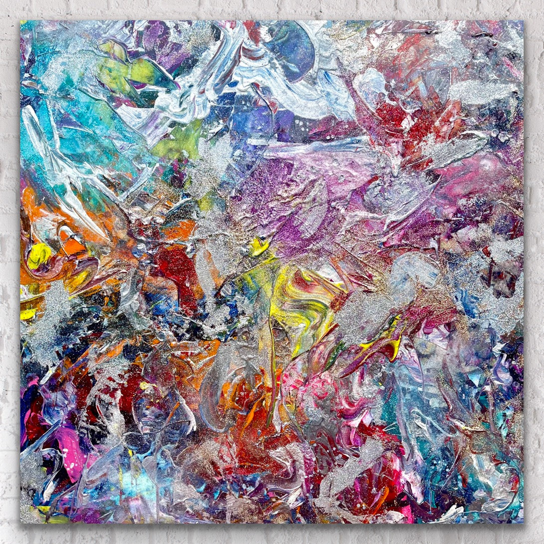 36x36 Acrylic/ Canvas/ Glitter/ Resin. Ready to hang